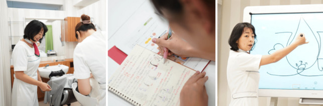仕事が充実してくると、プライベートでも笑顔が増えて充実してくる。当社に長年活躍するママさん社員が多いのも、それが理由かもしれません。私たちが提供するスカルプケアサービスは、お客様の不安を取り除き、 髪と心を豊かにすることで、お客様の明るい未来を築きます。