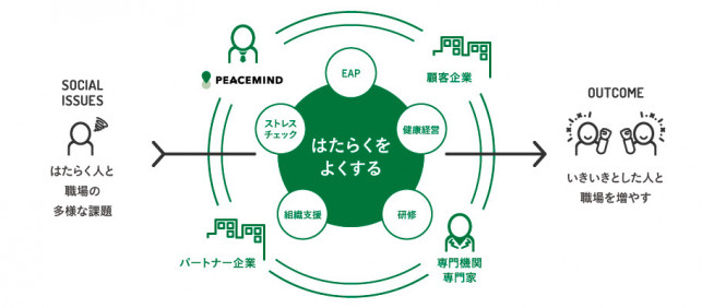 私たちは、はたらく人が抱える悩みの解決や、本来の仕事に集中できる職場環境造り、そして心身ともに健康でいきいきと働き続けられるための支援サービス、仕組みを提供していきます。